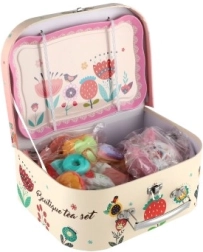 Iga väike tüdruk saab nüüd serveerida teed ja kohvi oma sõbrannadele ja kaisuloomadele selle armsa teekomplektiga. Komplekt on paigutatud praktilisse kohvrikesse, mis teeb sellest ideaalse valiku mängimiseks teel.