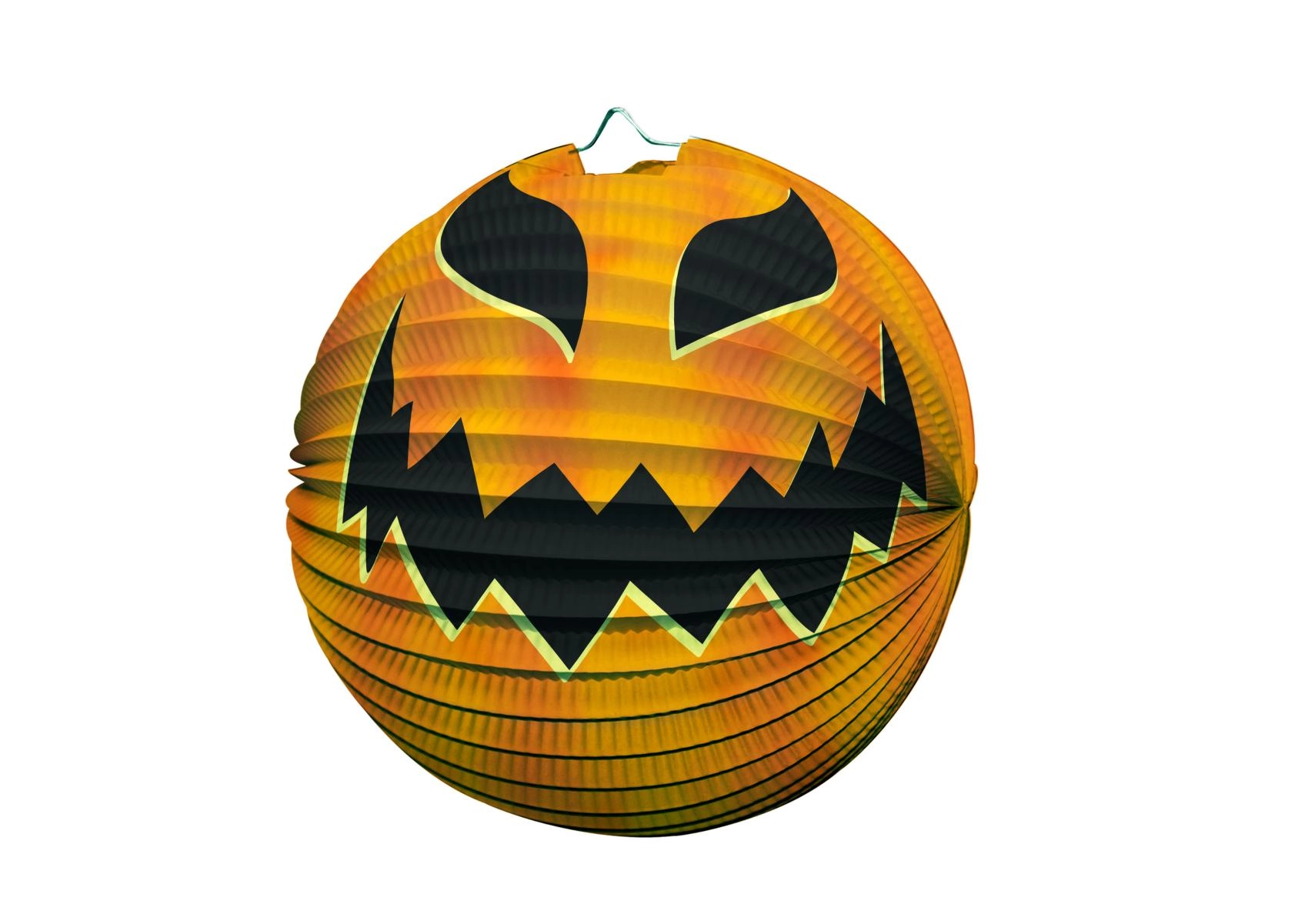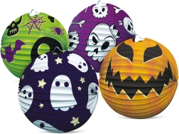 Loo hetkega võluv Halloweeni kaunistus. 25 cm läbimõõduga paberist lampionil on ribidega konstruktsioon, metallist riputusvõru ja silmapaistvad Halloweeni motiivid. Sobib hästi teemapidudeks, karnevaliks, sünnipäevadeks ning ka lastetoa kaunistuseks.
