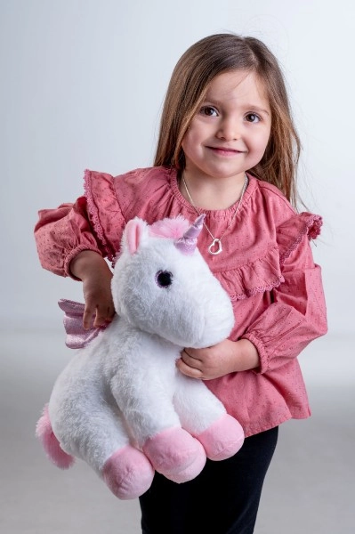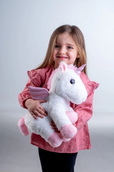 Plüüšist ükssarvik pehme valge karva ja roosade detailidega on ideaalne kallistamiseks ja lohutuseks.