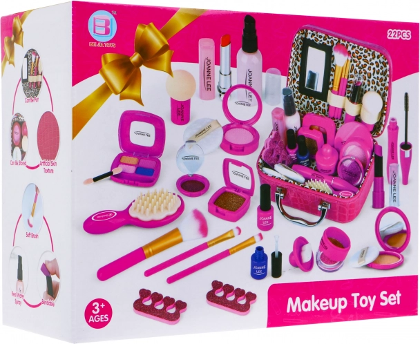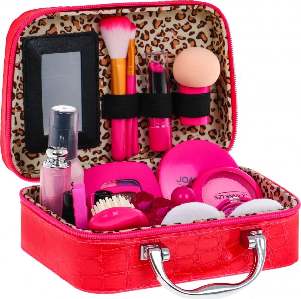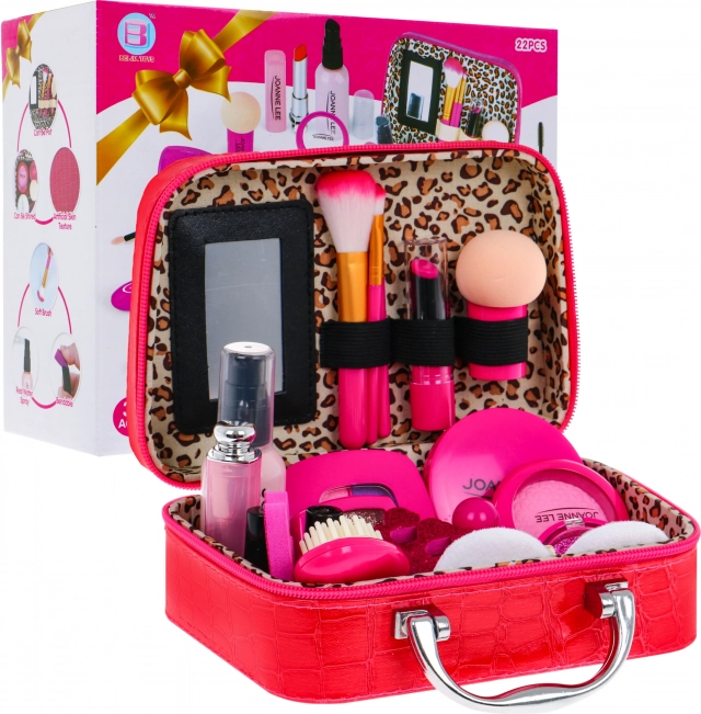 Stiilne kosmeetikakott väikestele printsessidele peidab endas täieliku mängumeigi ja tarvikute komplekti. Tänu elegantselt viimistletud pehmest ökonavast nahast materjalile, neljale väikesele jalale põhja all ja sisemisele peeglile on see mitte ainult ilus, vaid ka praktiline. Lapsed saavad jäljendada täiskasvanuid ja arendada oma kujutlusvõimet – seda kõike turvaliselt, sest tooted on üksnes dekoratiivsed atrapid.