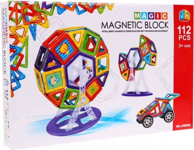 Avastage selle 112-osalise komplektiga nii lõbu kui ka õppimine. Tugevad magnetid võimaldavad hõlpsat ühendamist ja 2D- ja 3D-mudelite loomist – alates autost kuni vaaterattani. Värvilised läbipaistvad detailid arendavad laste loovust, loogilist mõtlemist ja ruumilist ettekujutust, vastupidavad materjalid tagavad turvalise mängu.