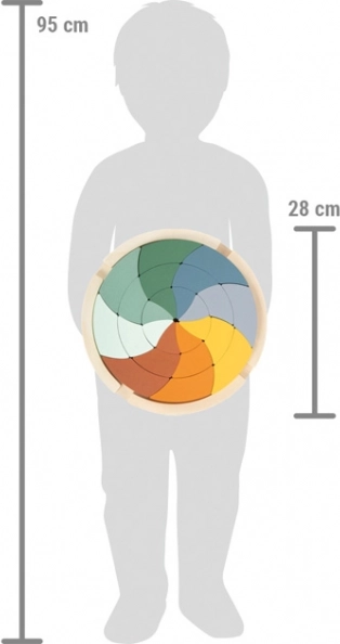 Avastage Montessori-mängude loov maailm selle 24 tükiga ümmarguse puidust puslega. Arendab peenmotoorikat, värvide ja vormide eristamist, ruumilist kujutlusvõimet ning loovat ehitamist. Saab kokku panna kauni mandala või kasutada tükke ehitusklotsidena – ideaalne alates 3. eluaastast.