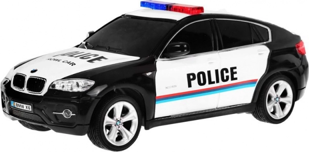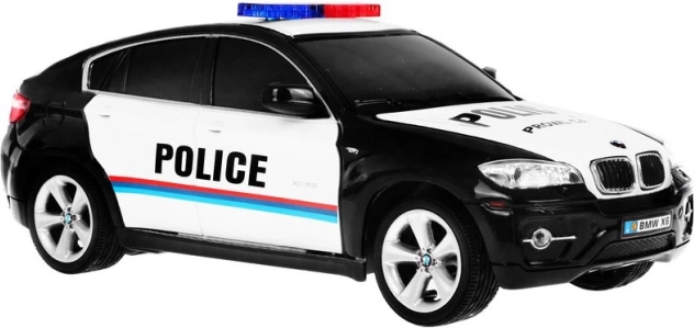Lõbus ja realistlik RC politseiauto BMW X6 mõõtkavas 1:24 rõõmustab nii väikseid kui suuri eriüksuse sõidukite fänne. Pakub täisfunktsionaalset 27 MHz puldist juhtimist, esisiduri ja tagatulede valgustust, kummirehve ning tagaveolist stabiilset sõitu hoogsateks tagaajamisteks kodus ja teel.