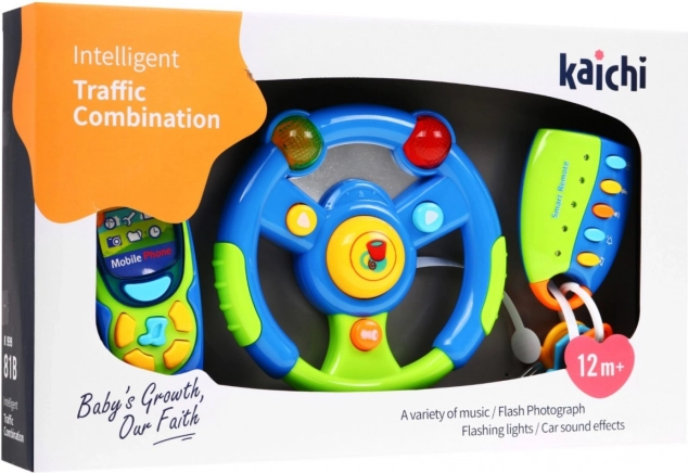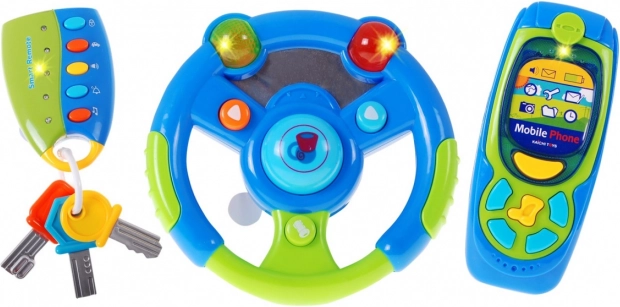 Interaktiivne komplekt väikestele lastele sisaldab mobiiltelefoni mitmete nuppudega, mis toovad rõõmsaid helisid ja meloodiaid. Roolil on interaktiivne ekraan, mis aktiveerub nuppude vajutamisel, sh helid nagu signaal, auto käivitamine ja suunatuled. Võtmed koos puldiga pakuvad viis funktsiooni veelgi lõbusamaks mänguks.