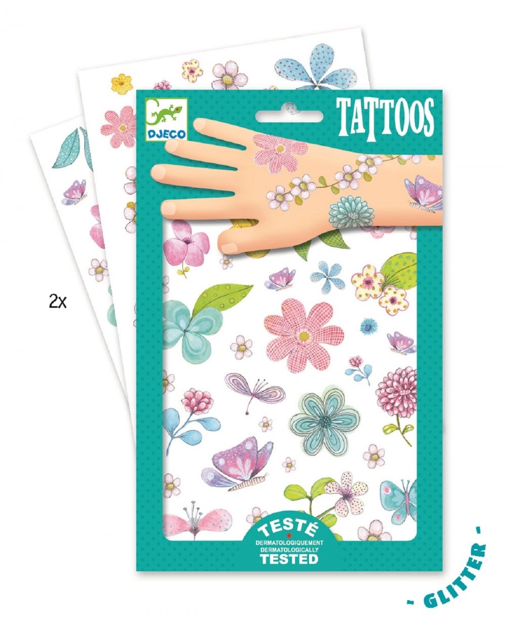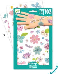 Too sära lastepidudele, vaheaja päevadesse ja igapäevastesse hetkedesse originaalse kehakaunistusega. Djeco lillelised tätoveeringud on loodud tundlikule laste nahale, üllatavad lihtsa pealekandmisega ja kaunite värvidega säraefektiga. Sobivad suurepäraselt sünnipäevapidudeks, karnevaliks ja loovateks pärastlõunaks sõpradega.