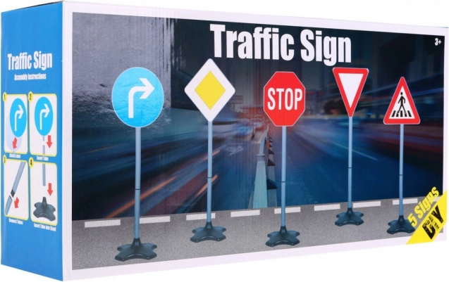Komplektis on viis populaarseimat ja enim kasutatavat märki: STOP, parempöörde kohustus, anna teed, peatee ja jalakäijate ülekäigukoht. Suurepärane täiendus lastefooridele ja teistele liikluselementidele.