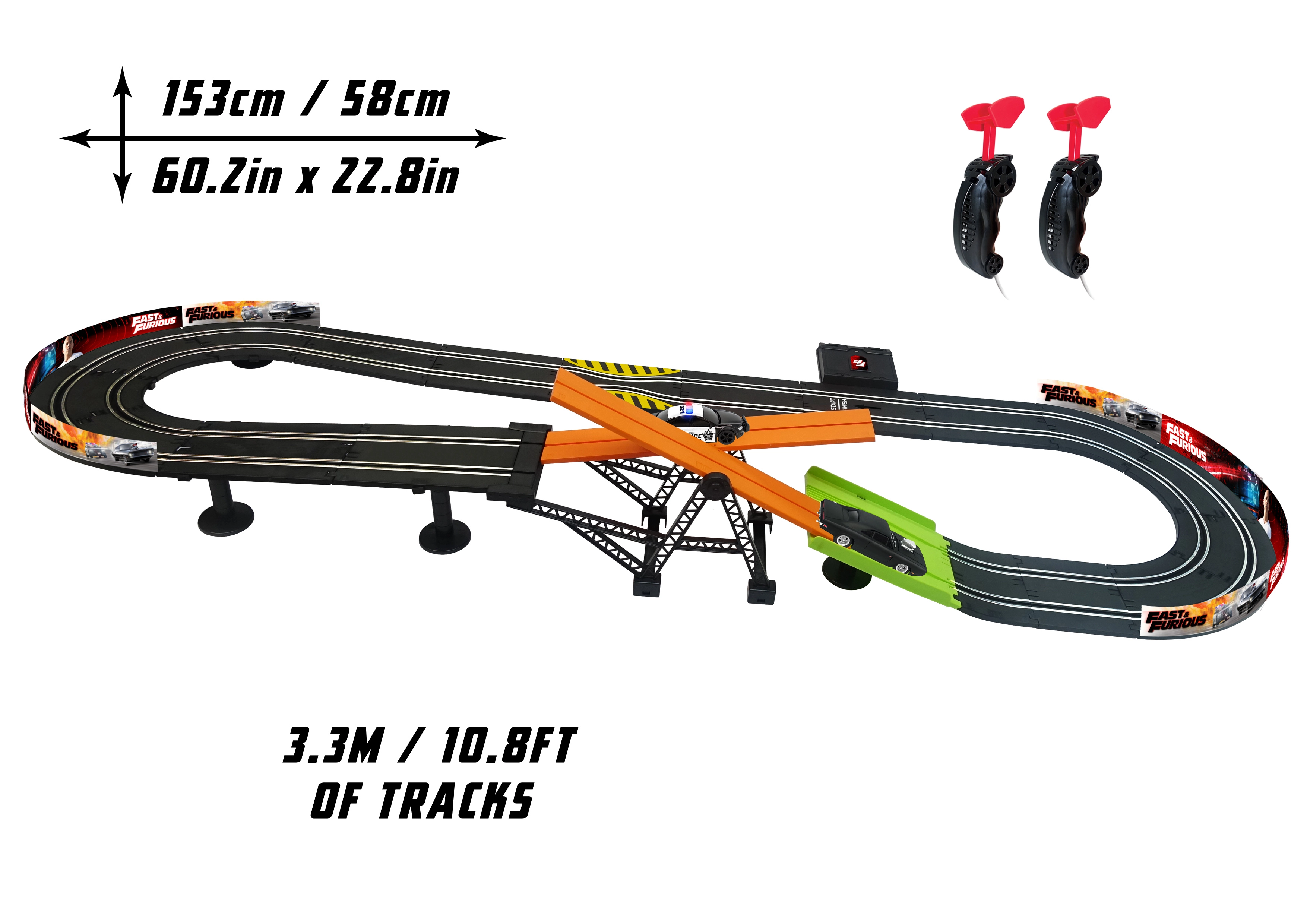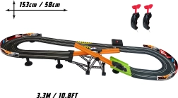 Komplektis on 2 juhtmega pulti, nii et saate kahekesi kohe pärast kokkupanekut startida. Spetsiaalne kiikuv takistus (seesaw) ja kitsenev läbipääs (squeeze) lisavad dramaatikat ja suurendavad lõbu. Mahukas paigutus 153 × 58 cm mahub enamikule laudadest või põrandale ning pakub suurepärast tasakaalu actioni ja ruumi vahel.