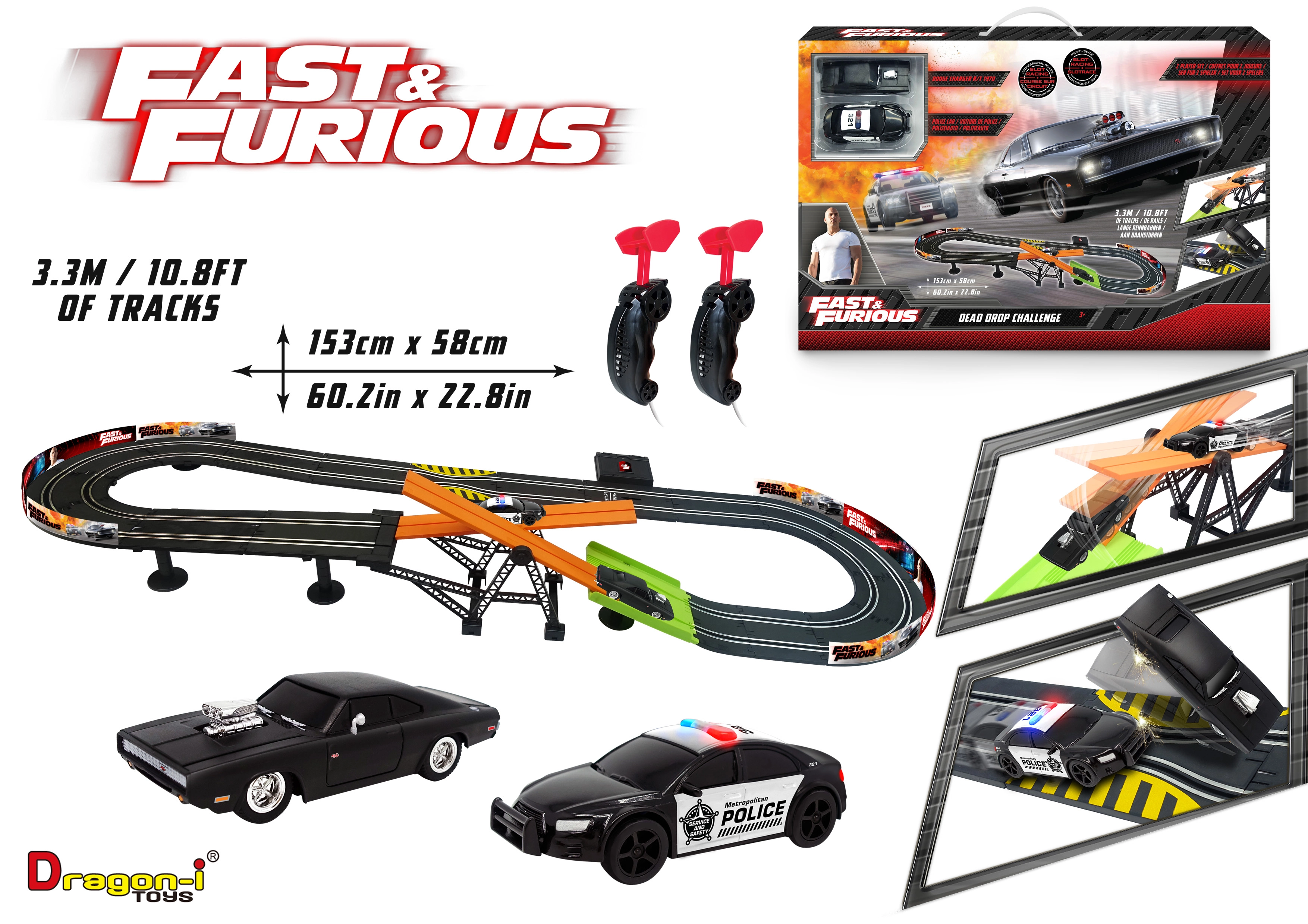 Astu kiiruse ja pingete maailma rajaga FAST & FURIOUS Dead Drop Challenge. Komplekt mõõtkavas 1:43 pakub dünaamilist 3,3 m paigutust action-elementidega, mis panevad proovile su juhioskused. Tänu kahele sõidukile – ikoonilisele Dodge Charger R/T 1970 ja politseiautole – naudid autentseid filmisarjast inspireeritud tagaajamisi.