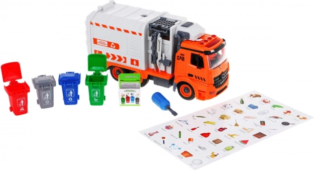 Avasta realistlik mänguasi, mis õpetab lõbusalt kestlikkust. Prügiveoauto külje peal oleva mehaanilise hoovaga konteinerite tõstmiseks, avatava tagaluugiga ning valgus- ja heliefektidega pakub tunde loovat mänguaega. Lapsed harjutavad samal ajal peenmotoorikat, kuna saavad sõiduki lahti kruvida ja uuesti kokku panna komplektis oleva vahetatavate otsikutega kruvikeeraja abil.