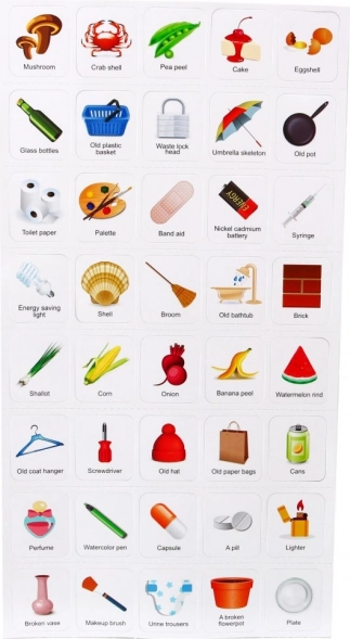 Komplekti kuulub pildiliste kaartidega juhend, mis selgitab, kuidas jäätmeid õigesti sorteerida: roheline – köögi/biojäätmed, sinine – taaskasutatavad jäätmed, hall – segaolmejäätmed, punane – ohtlikud jäätmed. Nii omandavad lapsed loomulikul viisil keskkonnasõbralikud harjumused ja vastutuse ümbritseva keskkonna ees.