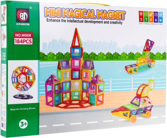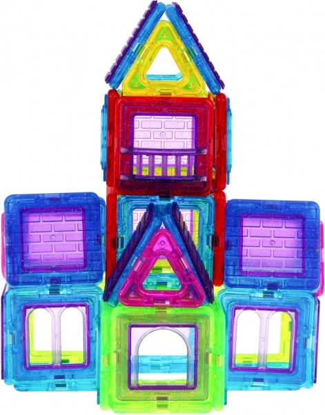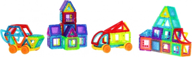 Erinevate kujundite ja värvide kombinatsioon võimaldab lastel luua maju, torne ja keerukaid geometrilisi konstruktsioone. Tugevad magnetid tagavad stabiilse ühenduse ja lihtsa käsitsemise.