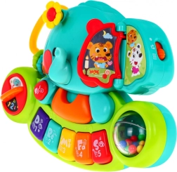 See värvikirev kvaliteetsest plastist elevant klaveriga lõbustab lapsi tundideks. See ühendab muusikafunktsioonid, valgusefektid ja interaktiivsed elemendid, mis toetavad uudishimu ja meelte arengut. Mängimine mini-klaveril arendab kuulmistaju, käe-silma koordinatsiooni ja viib loomulikult armastuseni muusika vastu.