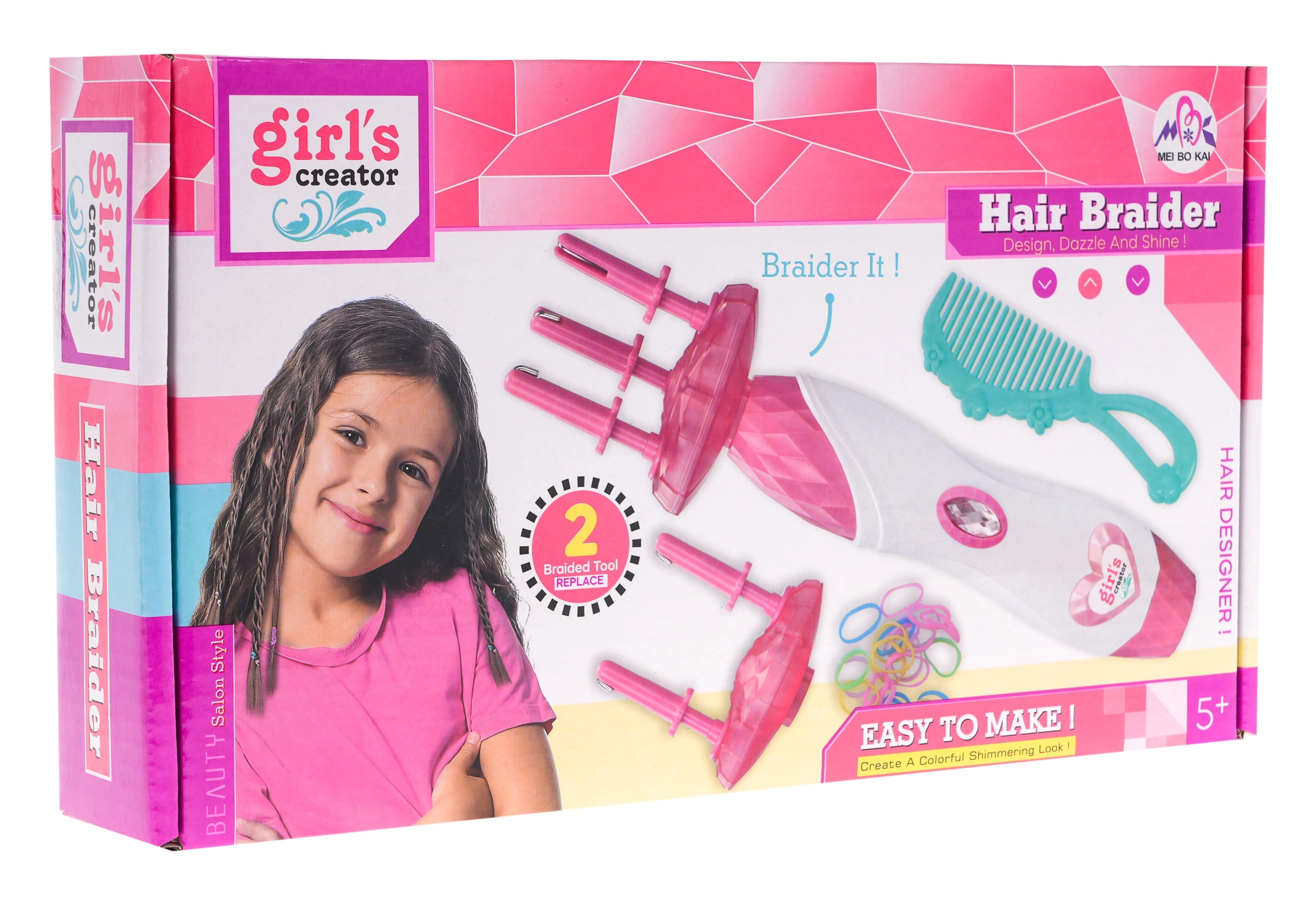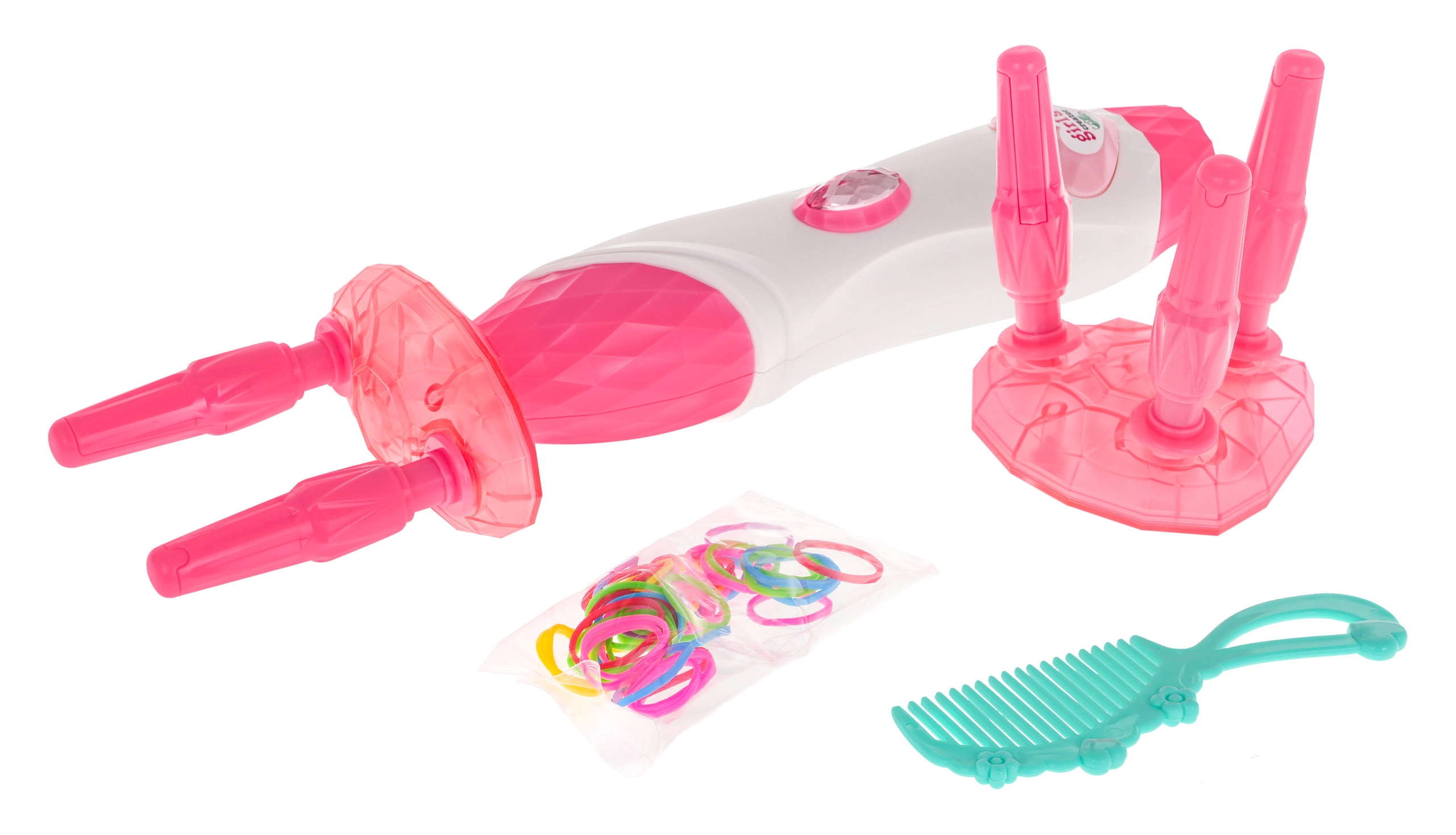 Patsipunumiskomplekt on loodud lihtsate ja lõbusate juuksehoolduste jaoks. See rõõmus komplekt sisaldab plastist punumismasinat vahetatavate otsikutega, kammi ja 50 juuksekummi. Piisab, kui asetada 2–3 juuksesalku avadesse ja nupuvajutusega luua kaunid patsid!