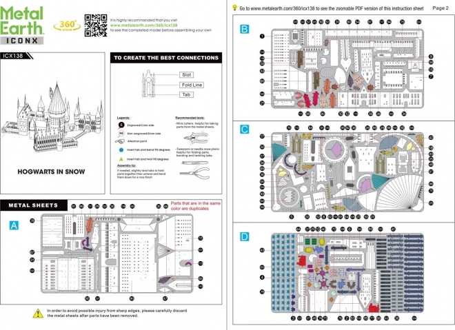 Ehitus käib ilma liimita – tükid ühendatakse lukkude ja sakikeste abil. Pakendis on 4 suurt teraslehte eeltöödeldud detailidega, kvaliteetne pintsett ja üksikasjalik juhend. Mugavamaks tööks sobivad ka peened tangid või väikesed lõikurid (ei kuulu komplekti).