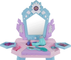 Pastelltoonides toaletilaud kaunistab lastetuba ja toetab rollimängu, loovust ning peenmotoorikat. Peegli alaosas asuvat nuppu vajutades süttivad tuled ja kuvatakse printsessid, mida saadavad meloodiad. Laste föön teeb häält ja tekitab kerge õhuvoolu, muutes juuksurimängu veelgi tõetruumaks.