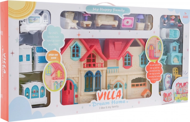 See värvikas kokkupandav villa pakub lastele alates 3. eluaastast lõputuid mänguvõimalusi. Avamisel pääseb ligi neljale detailse sisustusega toale koos mööbli ja aksessuaaridega. Uksekella nupu vajutamisel kõlab kell ja koera haukumine, samal ajal süttivad uste kõrval olevad lambid ning toas vilgub põrandalamp.