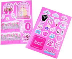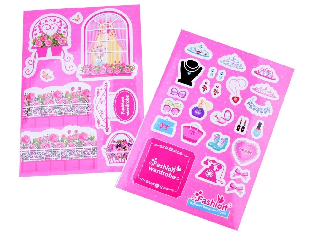 Komplekt sisaldab mitmekesist valikut kleidikesi, kingi, käekotte, kammi, peeglit ja prille ning lisaks kleebiseid garderoobi isikupärastamiseks. Lõputud kombineerimisvõimalused.