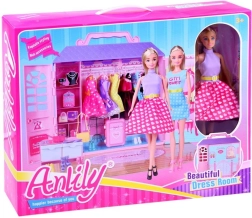 Avasta moe maailm ANLILY nukuga ja tema kandeka garderoobikapiga. Stiilne roosa „majakene” peidab riidepuid, sahtleid ja hoiutaskuid, samal ajal kui rikkalik komplekt sisaldab riideid, kingi ja aksessuaare lõpututeks lugudeks ja ümberriietumisteks. Kaasas on ka kleebised, et kujundada omaenda moenurk.