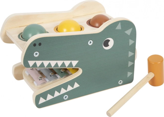 Avastage lõbus 2-ühes mänguasi: ksülofon ja toksimispink armsa krokodilli kujul. Lapsed naudivad muusikalist avastamist ning arendavad samal ajal peenmotoorikat, silma-käe koordinatsiooni ja arusaamist põhjus-tagajärg seostest. Eemaldatav värviliste klahvidega ksülofonit saab mängida ka eraldi – topeltkogus lusti ja õppimist.
