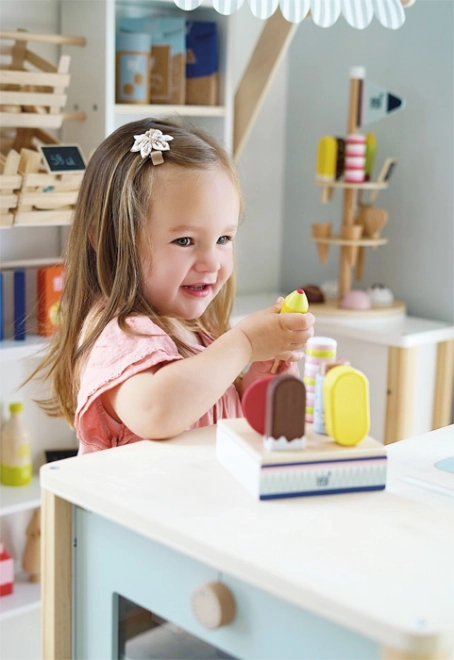 Värvilised jäätised realistlike vormidega kutsuvad “maitsma” ja toetavad loovat rollimängu müüjate ja klientidena.