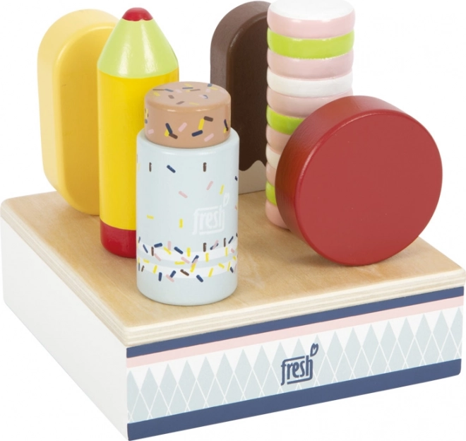 Õrnad värvid ja realistlikud vormid toetavad meelte arengut, samas kui jäätiste sisseasetamine ja väljavõtmine treenib silma-käe koordinatsiooni. Komplekti saab suurepäraselt kombineerida kompaktse FRESH letiga, et luua täielik jäätisejaam tundidepikkuseks loovaks mänguks.