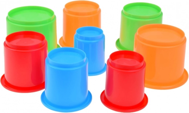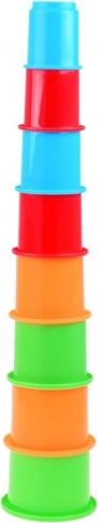 Komplektis on 8 erksavärvilist tassi, mis mahuvad üksteise sisse ja säästavad ruumi. Tarnitakse värvilises kinkekarbis – suurepärane kingiidee sünnipäevaks ja esimese arendava mänguasjana.