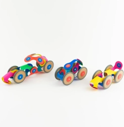CLIXO Wheel Creator on paindlik magnetiline ehituskomplekt 6–10-aastastele lastele, mis arendab loovust, ruumilist taju ja peenmotoorikat. Pöörlevad magnetid 24 fikseeritud asendiga hoiavad mudelid kindlas vormis ja sobivad ka dünaamiliseks mänguks. Puidust rattad panevad teie loomingud liikuma – autodest ja rongidest kuni armsate loomakesteni – kõik säravates vikerkaarevärvides.