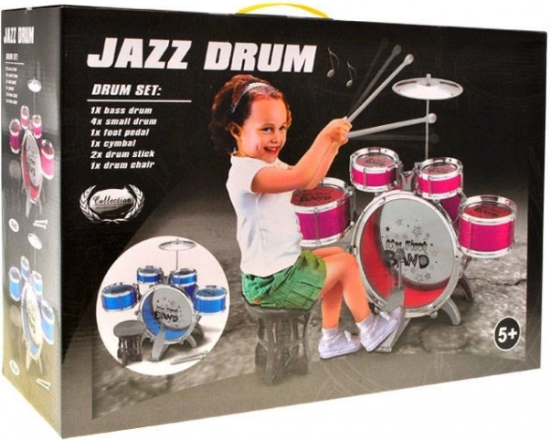 Lastele mõeldud alustav trummikomplekt viie trummi, taldriku ja pedaaliga pakub tunde muusikalist lõbu ning rütmitunnetuse arendamist. Komplekti kuuluvad ka mugav taburet ja pulgad. Ideaalne kingitus väikestele muusikasõpradele, kes soovivad avastada muusikamaailma ja harjutada koordinatsiooni. Reaalne välimus, lihtne kokkupanek ja vastupidav plastkorpus.