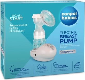 Praktiline ja vaikne Canpol babies EasyStart elektriline rinnapump koos kahefaasilise imemisrütmiga, 3 töörežiimi ja 3 imemisjõu tasemega toetab õrnalt laktatsiooni ja tagab mugava piima väljalüpsmise nii päeval kui öösel. Võimaldab toidet vooluvõrgust või patareidest, omab mugavat silikoonlehtrit ning on ühilduv kõigi Canpol babies pudelitega. Kõik valmistatud ohututest materjalidest, ilma BPA-ta.