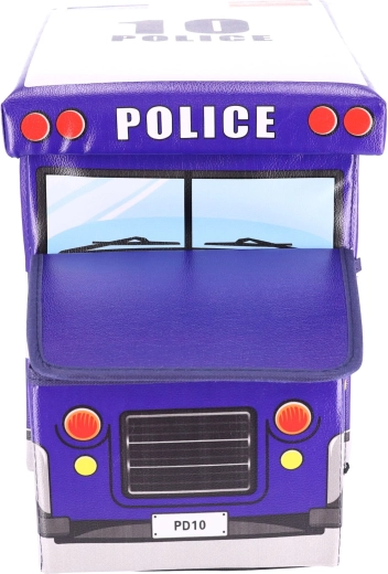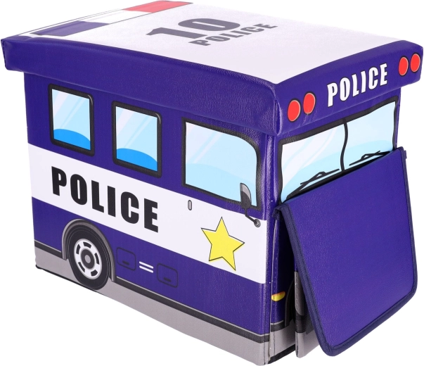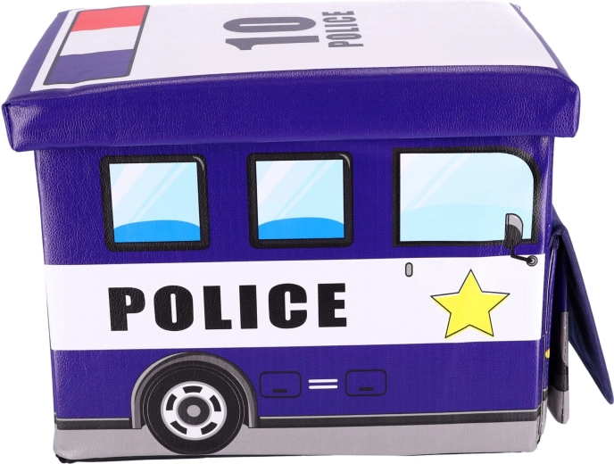 Praktiline ja dekoratiivne hoiukast politseiauto kujul aitab hoida korda lastetoas. Kaks sisemist lahtrit võimaldavad kiiret sorteerimist mänguasjadele ja tarvikutele, tugev kaas tagab lihtsa ja ohutu avamise. Tänu stabiilsele konstruktsioonile saab kasti kasutada ka mugava tabureti, jalatoe või väikese lauakesena.