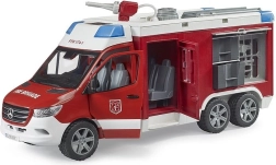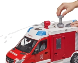 Realistlik MERCEDES-BENZ Sprinter tuletõrjeauto Bruderilt rõõmustab iga väikest päästjat. See pakub töötavat veekahurit koos paagi ja pumbaga, valgus- ja helimoodulit, avatavaid uksi ja panipaiku ning pehme mustriga rehve suurepäraseks mänguks. Kvaliteetne teostus vastupidavast ABS-plastist ja ühilduvus BWORLD tarvikutega tagavad pika eluea ja palju lusti.