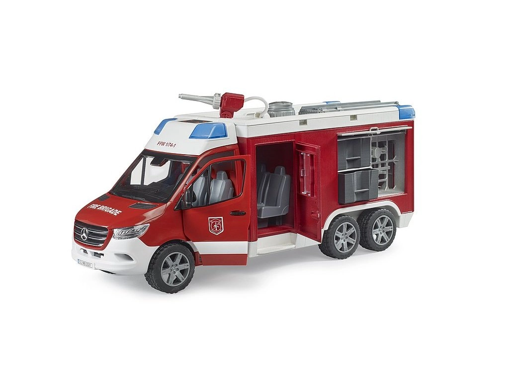 Täielikult toimiv veesüsteem paagi, pumba ja keritava voolikuga võimaldab „kustutada“ iga tulekahju hetkega. Valgus- ja helimoodul toetab põnevaid stseene, samas kui pehme mustriga rehvid tagavad kindla sõidu. Mudel ühildub BWORLD lisadega ning seda saab täiendada lükkelabidaga (Bruder 2581/2582) või kombineerida bworldi tuletõrjedepooks (Bruder 62702).