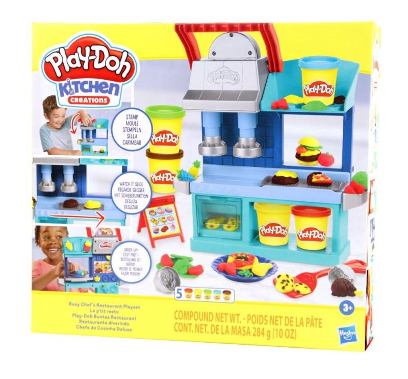 Lase lastel avastada kokkamise maailma mängukomplektiga Play-Doh Köögikreatsioonid. See interaktiivne komplekt pakub rohkelt võimalusi: lapsed saavad lõbusate vormidega valmistada pitsat, burgereid, pastat või kana — piisab, kui vajutada hooba ja road on valmis.
