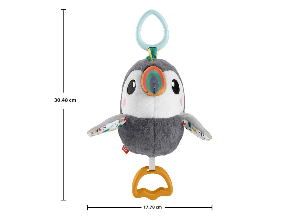 Armas Fisher‑Pricei tukan on pehme riputatav mänguasi vankrile, turvahällile ja võrevoodile. See pakub õrna kõrinat, krabisevaid tiivakesi, värvilist nokka ja närimisrõngaid, mis leevendavad igemete sügelust hammaste tulekul. Universaalse klambriga on mänguasi alati käepärast ning toetab beebi meelte arengut ja peenmotoorikat alates sünnist.