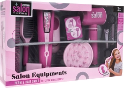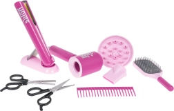 Komplekti kuulub ka fööni hoidik korrapäraseks hoiustamiseks ning hulk vajalikke tarvikuid: klassikalised käärid, hõrendus-/fileerkäärid, kamm ja hari. Tänu turvalisele teostusele on komplekt ideaalne alates 3. eluaastast ning arendab suurepäraselt peenmotoorikat, ettekujutusvõimet ja sotsiaalseid oskusi.