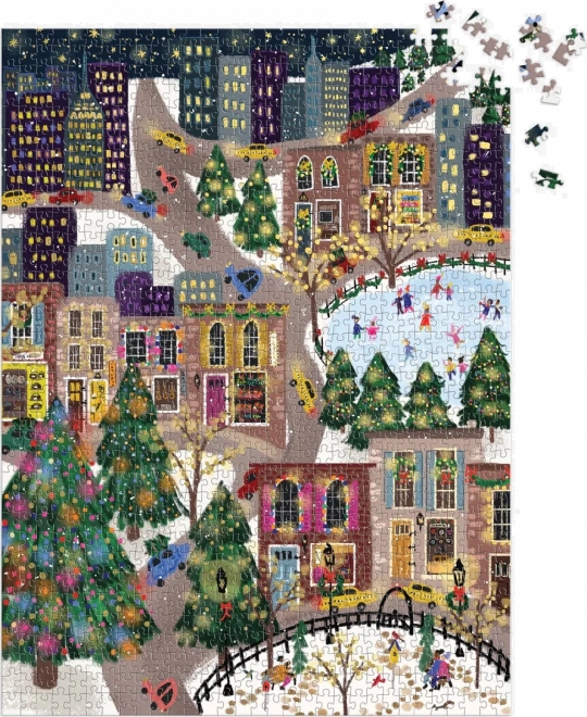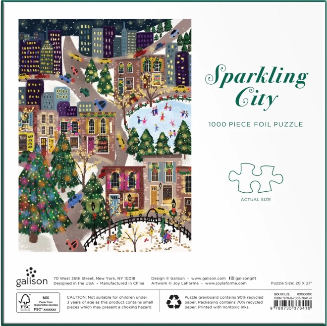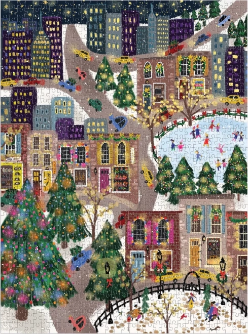 Avasta pidulik linnavaade, mis on täis värve, tulesid ja uisutajaid. Puslel on valitud motiivi osadel metallikiled, mis loovad ainulaadse sädeleva efekti, mis tuleb esile erineva valguse korral. Ideaalne kingitus puslesõpradele või talvine kodukaunistus.