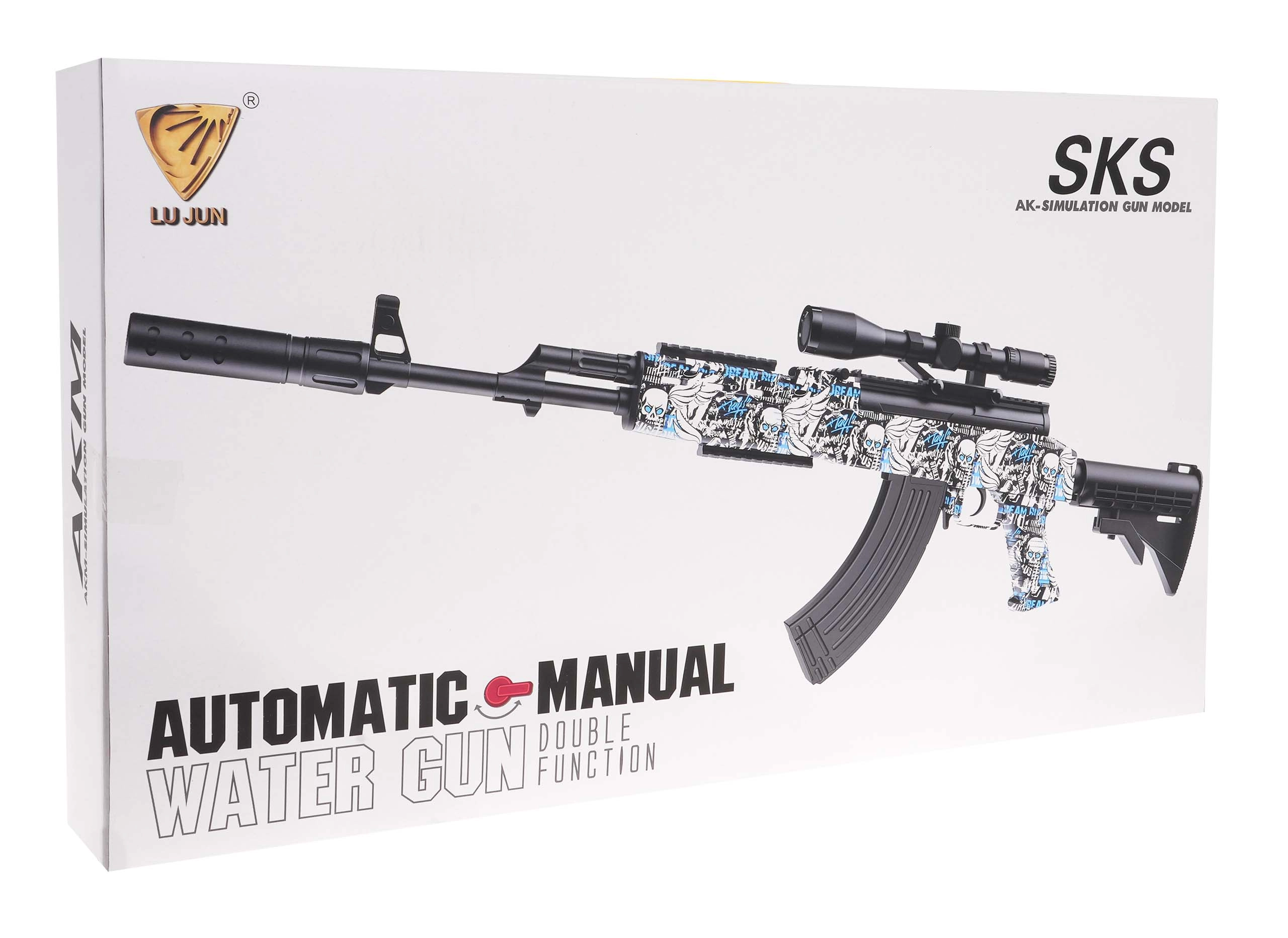 See realistliku välimusega AKM-geelpüstol ühendab autentse disaini turvalisema lõbuga tänu hüdrogeelkuulidele. Vala kuulid vette 4–6 tunniks, nõruta liigne vesi ja oledki valmis mänguks. Automaat- ja käsirežiim võimaldavad valida endale sobiva tulistusstiili, samas kui suurendusega optika aitab täpsemalt sihtida.