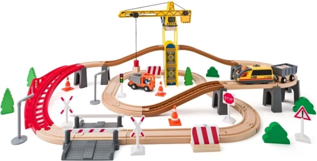 Puidust rongirada ehitusteemaga on ideaalne valik väikestele ehitajatele. Komplektis on kraana materjali peale- ja mahalaadimiseks, rööpad ning tarvikud, mis haaravad lapsed fantaasiamaailma. Tugev puidumaterjal ja hoolikas teostus muudavad mänguasja vastupidavaks ja ohutuks, et see peaks vastu igapäevastele seiklustele.