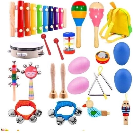 Komplekt on loodud turvaliseks mänguks ja oluliste oskuste arendamiseks: rütmitaju, käe-silma koordinatsioon ning sotsiaalne suhtlus ühise musitseerimise käigus. Tänu laiale pillivalikule saavad lapsed kogeda erinevaid helisid, tämbreid ja dünaamikat, mis toetab loovust ja muusikalist kuulmist.