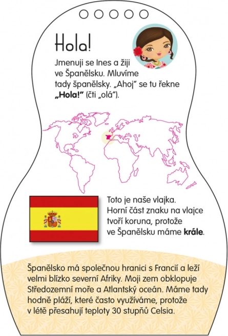 Raamat Hispaania nukke INES riietame ühendab meisterdamise, mängu ja maailma avastamise. Väikesed kunstnikud saavad värvida Hispaania moest inspireeritud kleite ja aksessuaare ning samal ajal avastada Hispaania laste kombeid, traditsioone ja igapäevaelu. Tänu kleepsudele loovad nad hõlpsasti oma mudeleid, kombineerivad stiile ja arendavad fantaasiat.