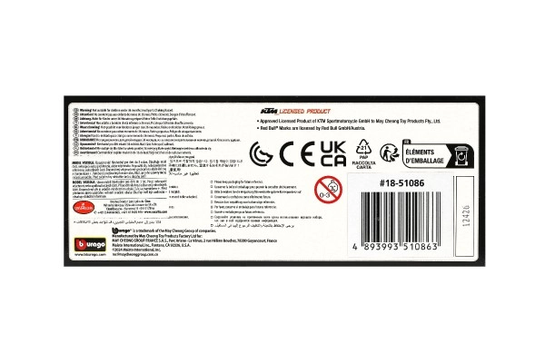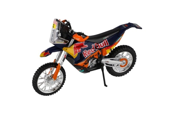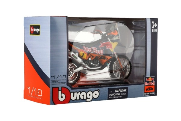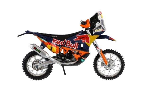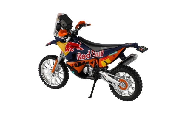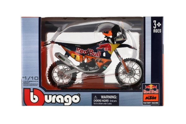 BBURAGO võidusõidumudel mõõtkavas 1:18 kujutab täpselt RED BULL KTM Rally Dakar 2019 disaini – sealhulgas erksat oranži-sinist värvilahendust, logosid ja võistluselemente. Tänu metallist ja plastist detailide kombinatsioonile on mudel robustne ning samas peene viimistlusega.