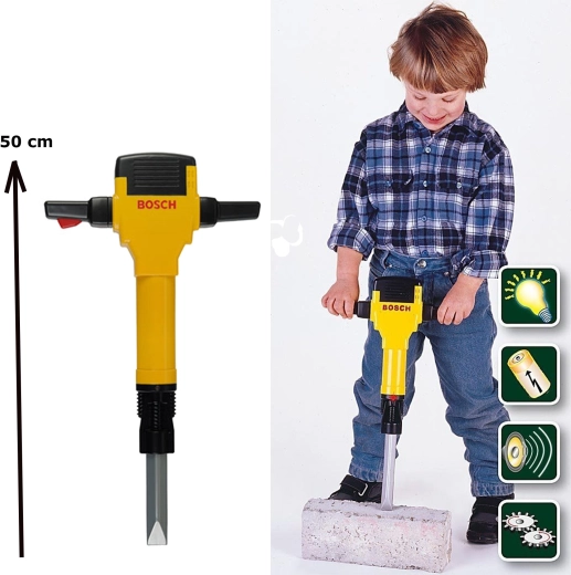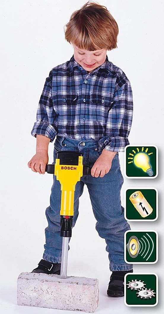 Kleini BOSCHi laste pneumaatiline haamer on tõetruu koopia päris tööriistast ja sobib suurepäraselt väikestele ehitajatele. Kollane korpus mustade ja hõbedaste detailide, punase BOSCHi logoga ning tõhusa ergonoomiaga toetab fantaasia ja peenmotoorika arengut.