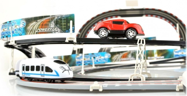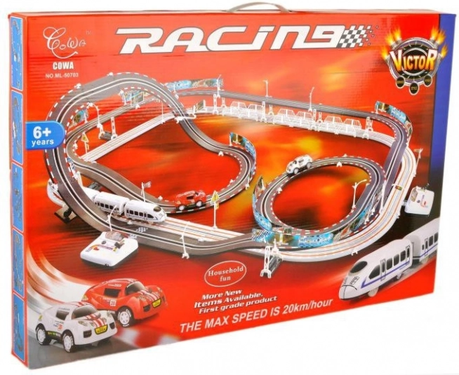 See hiiglaslik 2-ühes võidusõidurada toob võidusõidu põnevuse otse teie koju. Loodud lastele alates 6. eluaastast, pakkudes teravaid kurve, serpentiine ja sirgeid lõike, mis annavad maksimaalse lõbutsemise. Kiirusega kuni 20 km/h saavad autod ja rongid sõita oma radadel ilma kokkupõrgeteta.