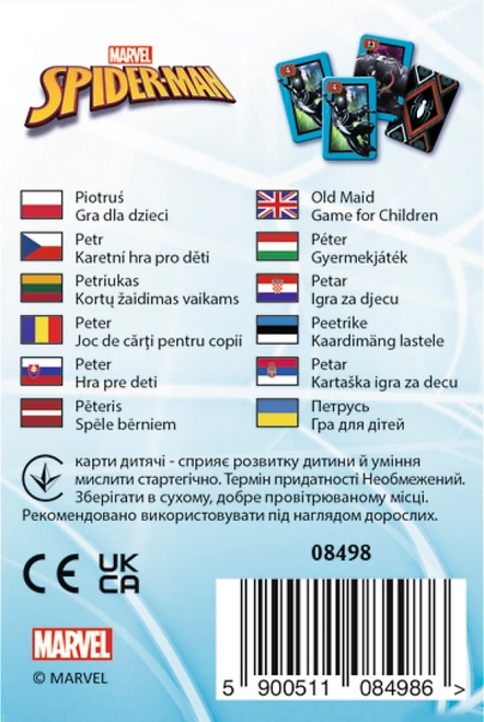 Otsi sobivaid paare kangelastega SPIDERMANI maailmast ja vabane kõigist kaartidest enne teisi. Pakis on 25 kaarti (12 paari + 1 must Peeter), nii et iga käik toob palju pinget ja naeru. Mäng on kiiretempoline, seega sobib nii lühikeseks pausiks kui ka pikemaks pereõhtuks.