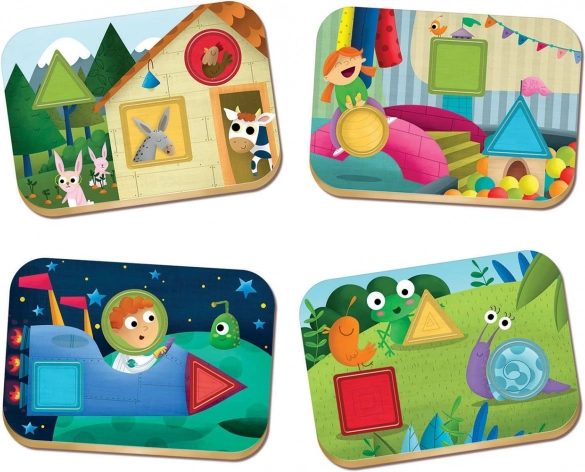 See mäng arendab laste tähelepanu, rikastab nende fantaasiat ning õpetab tundma põhilisi geomeetrilisi kujundeid ja värve erinevates keskkondades: talus, mängutoas, aasal ja kosmoses.