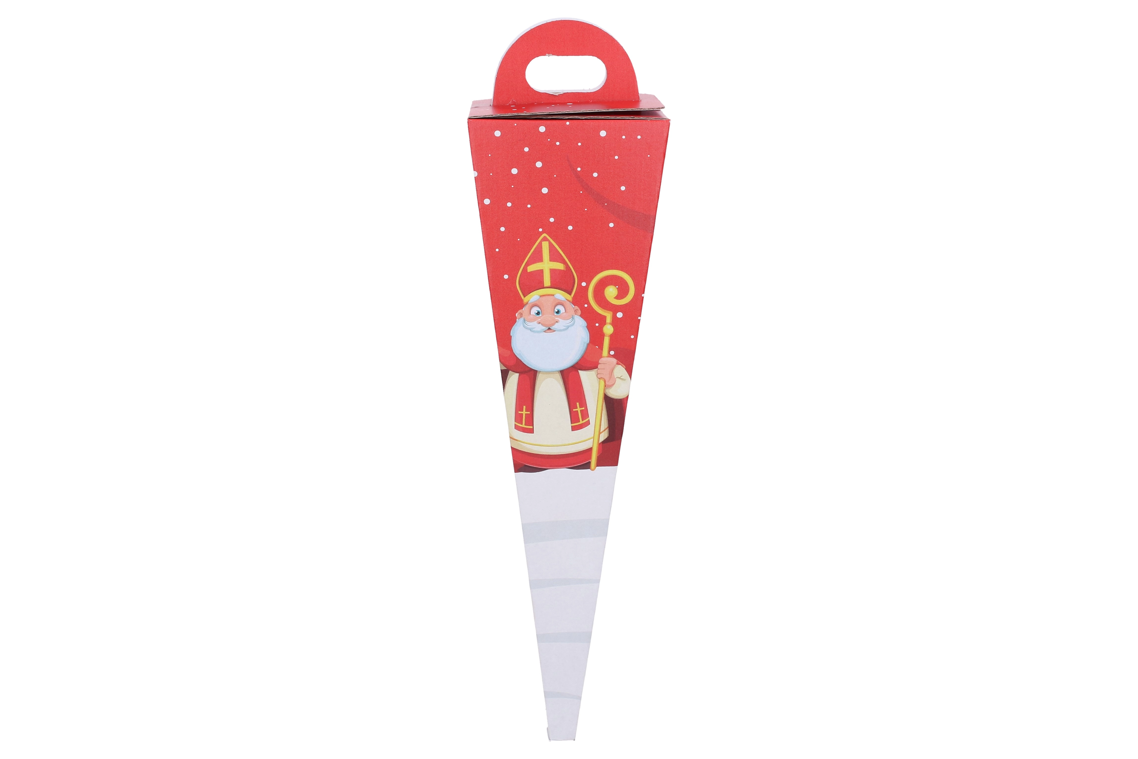 Traditsiooniline punane kornett Jõuluvana motiiviga, pikkus 50 cm, sobib suurepäraselt jõulu-eelsete maiustuste ja pisikingituste pakkimiseks. Pakub rohkelt ruumi maiustele ja väikestele kingitustele ning tänu erksale värvile paistab kaunilt silma. Suurepärane valik lapsevanematele ja koolidele, kes otsivad praktilist, vastupidavat ja esteetilist pakkimislahendust.