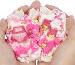Roosa ja valge kineetiline liiv võimaldab lastel luua ja vormida kujundeid vastavalt oma fantaasiale. Liiv sisaldab ka väikeseid dekoratiivseid elemente.
