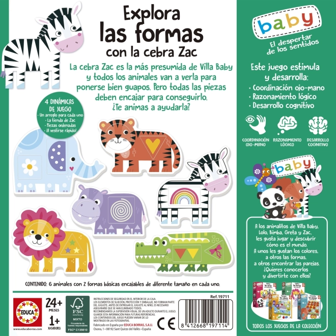 EDUCA Baby puslemäng on laste treeningväljak, kus nad avastavad põhigeomeetrilisi kujundeid lõbusal ja avastama kutsuval moel. Tänu suurtele ja tugevatele tükkidele on käsitsemine väikestele kätele turvaline ja mugav.