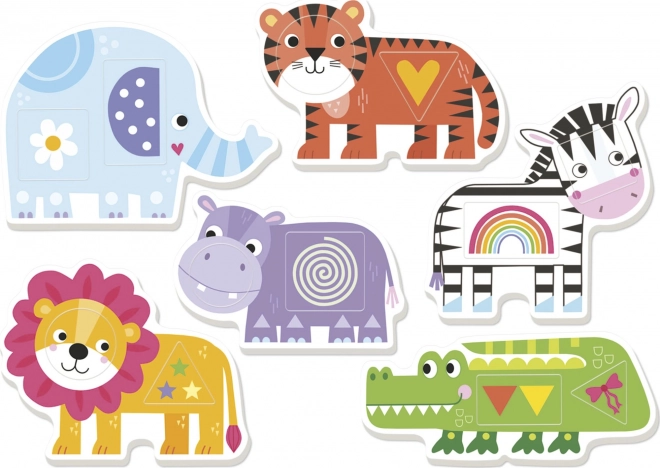 Mängus on 6 looma kahe omavahel ühendatud kujundiga, mis köidavad ja lõbustavad iga last.