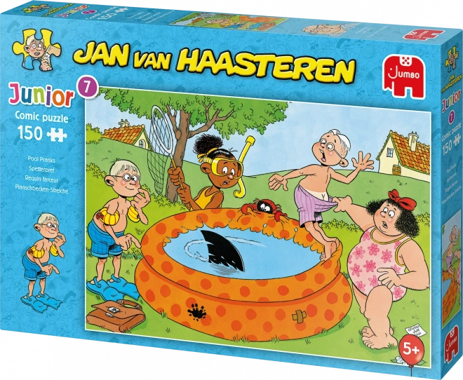 Sukeldu pöörastesse stseenidesse Junior-sarjast – vembud basseini ääres legendaarse karikaturisti JAN VAN HAASTEREN sulest. Tüüpilised signatuurid nagu haiuim, ootamatud omanikuta käed, proteesihambad, Püha Nikolaus ning autori autoportree muudavad kokkupaneku naerurohkeks otsimisseikluseks.